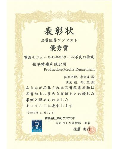 Siemens VDO Huizhou Outstanding Supplier Winning Excellent Supplier