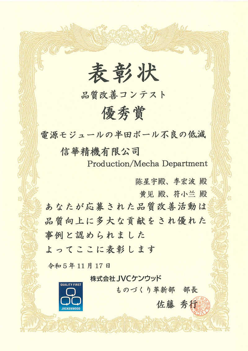 2023 JVC品质改善优胜奖